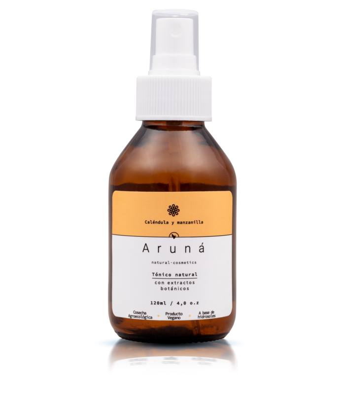 Formula libre de alcohol que tonifica sin resecar. Elaborada a base de hidrosoles de caléndula, manzanilla, hierbabuena y extracto de miel, ingredientes activos que hidratan y desinflaman la piel seca, ayuda a cerrar los poros abiertos y preparar la piel para otros tratamientos, también se puede usar para sellar el maquillaje. La función del tónico es tersar la piel, relajar los músculos de la mímica facial y mantener el pH balanceado, además, da balance a los niveles de pH en la piel, remueve el exceso de grasa y brillo, refina y unifica el tono de piel, reduce el tamaño de los poros, reduce el enrojecimiento y la irritación y repara la piel para recibir un tratamiento posterior. Este tónico es especial para pieles sensibles, delicadas, enrojecidas, descamativas y con acné.
